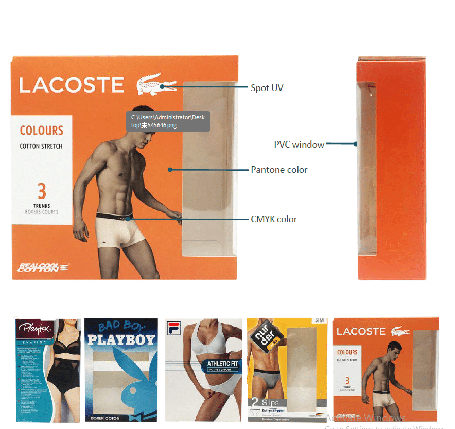 We have developed underwear packaging with PVC windows as one of our core product solutions, because it allows clear product visibility while maintaining structural strength. Over the years, we have worked with leading brands such as Lacoste®, DIM®, and others, gaining extensive production experience. This has helped us minimize production and management costs while solving common issues such as window cracking and color fading. As a result, we have consistently delivered cost-effective, high-quality packaging solutions for global clients.